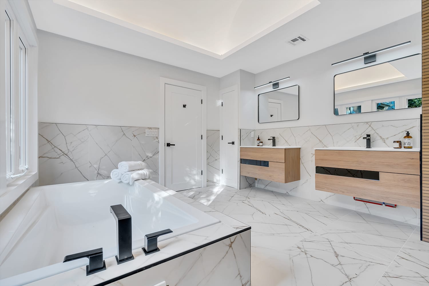 A one-of-a-kind sprawling luxurious property with room to host the entire family! See photos to check the layout and email or WhatsApp us for more details and info. The property has a Shul and Sefer Torah available for your use, a large heated pool open from Pesach until Sukkos and a hot tub and Shvitz open year round.